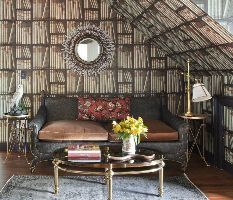 Along with adding the books, you can add bookends, antique globes, and vintage typewriters to enhance the literary ambiance.
